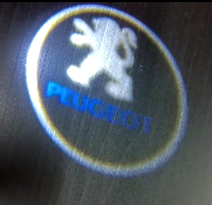 Logo Peugeot bien visible même sur un sol foncé. Bon contraste et activation immédiate à l’ouverture.